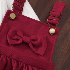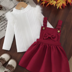 ๐ Ensemble Robe Salopette & Pull Manches Longues โ Bรฉbรฉ Fille (Bordeaux & Blanc)