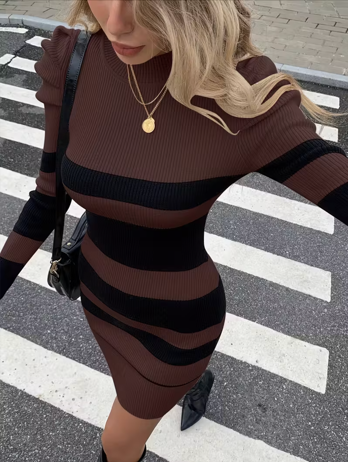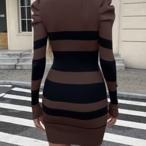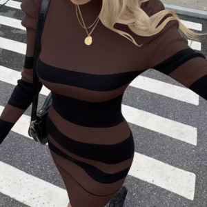 Robe pull moulante à rayures marron & noir